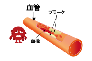 動脈硬化とは、血管の内側にコレステロールなどのプラーク(ゴミ)が溜まり、血管が厚く、硬くなってしまう状態のことです。
