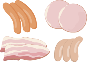 ハム、ソーセージ、お惣菜、栄養ドリンクなどで、腐敗を防ぐために使われます。
