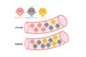 脂質異常症とは、血液中のコレステロールや中性脂肪が基準値から外れ、多すぎたり少なすぎたりする状態のことです。以前は「高脂血症」と呼ばれていましたが、善玉コレステロールが少ない場合も問題となるため、現在では「脂質異常症」という名称が一般的になっています。