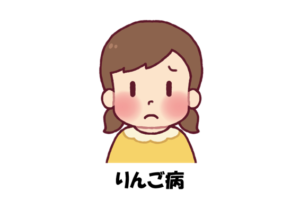 りんご病は、ヒトパルボウイルスB19が原因の感染症で、頬が赤くなることからこの名で呼ばれています。