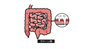 クローン病は、口から肛門までの消化管のどこにでも炎症が起こる、原因不明の慢性的な病気です。特に小腸や大腸に炎症が起きることが多く、潰瘍(深くえぐれた傷)やびらん(ただれ)ができます。