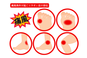 - 発症部位: 約7割が足の親指の付け根に発症しますが、足首、膝、手の関節にも起こることがあります。