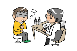 - 胸を締め付けられるような激しい痛みを伴う(→心筋梗塞などの可能性があります)