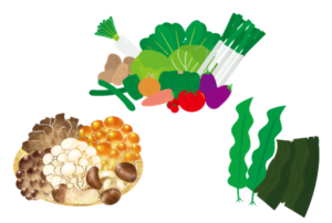 野菜、海藻、きのこ、大豆製品に含まれる食物繊維は、余分なコレステロールを吸着して体の外に出してくれます。